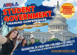 The American Student Government Association (ASGA), the conference host, and any other conference partners or suppliers will not have any responsibility or liability for personal injury incurred while traveling to and from ASGA’s Chicago Student Government Training Conference or at any time on the conference site(s). ASGA and the conference host will not have responsibility or liability for any actions of any companies that are directly or indirectly involved with the conference. Any video, audio, or photographs taken of our students and/or advisors may be used by ASGA for future promotional purposes.